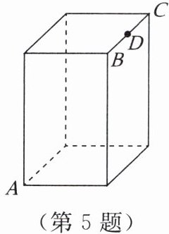 5. 如图,棱柱侧面都是长为 $8cm$、宽为 $4cm$ 的长方形,点 $D$ 是 $BC$ 的中点,在棱柱下底面的 $A$ 处有一只蚂蚁,它想吃到上底面 $D$ 处的食物,需要爬行的最短路程是 $s cm$,则 $s^{2}$ 是(