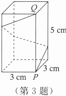 3. 如图,长方体的底面边长为 $3cm$,高为 $5cm$,若一只蚂蚁从点 $P$ 开始经由四个侧面爬行一圈到达点 $Q$,则爬行的最短路程为