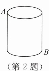 2. 如图,有一个底面周长为 $24cm$、高为 $5cm$ 的圆柱,一只蚂蚁沿侧面从点 $A$ 到点 $B$ 所经过的最短路线长为