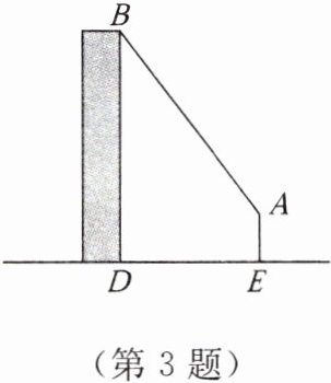 3. 如图,一高层住宅发生火灾,消防车立即赶到距高层住宅$9m$处(车尾$AE到高层住宅墙面的距离DE$),升起云梯$AB$到发生火灾的住户家窗口,已知云梯长$15m$,云梯底部距地面$3m$,发生火灾的住户家窗口距地面的高度$BD$是多少米?