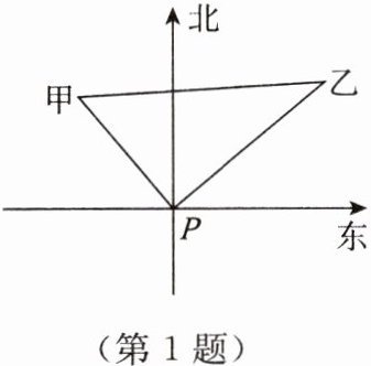 1. 如图,某港口$P$位于东西方向的海岸线上,甲、乙两艘轮船同时离开港口$P$,分别以每小时$12海里和16海里的速度沿着北偏西40^{\circ}方向和北偏东50^{\circ}$方向航行,$1$小时后,两船相距