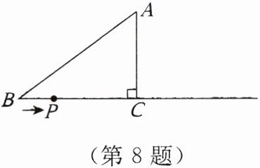 8. 如图,在$Rt\triangle ABC$中,$\angle ACB = 90^{\circ}$,$AB = 5cm$,$AC = 3cm$,动点$P从点B出发沿射线BC以1cm/s$的速度移动,设运动的时间为$t s$。