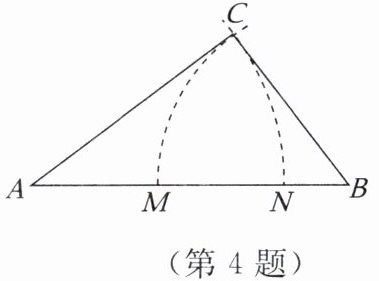 4. 如图,已知点$M$,$N是线段AB$上的两点,$AM = MN = 2$,$NB = 1$,以点$A$为圆心,以$AN$的长为半径画弧;再以点$B$为圆心,以$BM$的长为半径画弧,两弧交于点$C$,连接$AC$,$BC$,则$\triangle ABC$一定是(