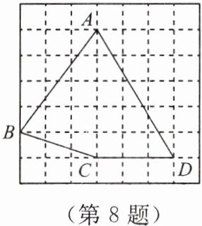 8. 如图,网格中小正方形的边长都是 1,四边形 $ABCD$ 的四个顶点都在格点上,四条边中长度是有理数的有(