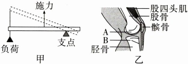 7. 图甲为杠杆的工作原理示意图,图乙为人体膝关节结构示意图,据此请回答下列问题。