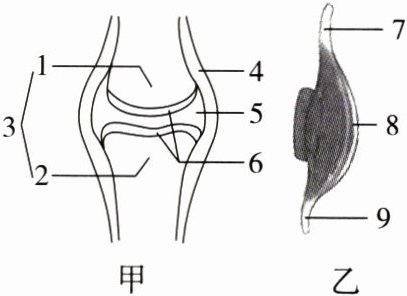5. 校园内的“阳光体育”活动促进了青少年的健康成长。甲、乙两图分别是关节和骨骼肌的结构示意图。下列叙述正确的是(