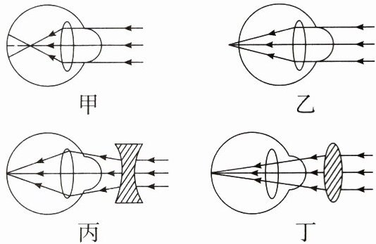 4.图甲、图乙表示近视眼成像情况,图丙、图丁表示矫正方法,正确的一组是 (