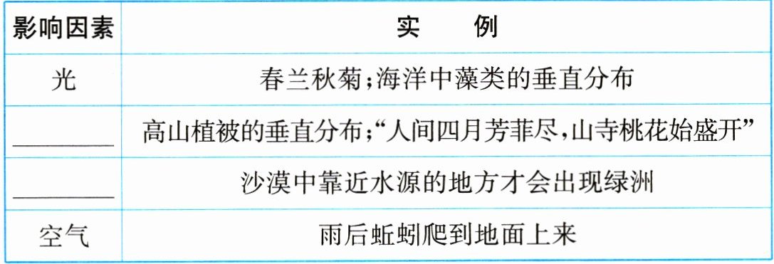 $ 因素:影响某种生物生活的其他生物\end{cases}$