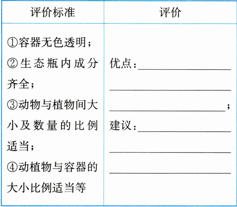 (2)容器无色透明,生态瓶内有植物、动物、细菌和真菌等生物部分,还有水、氧气等非生物部分 减少瓶中小鱼的数量;生态瓶中植物与容器的大小比例要适当等