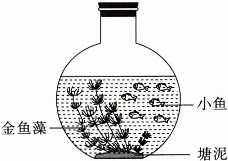 (1)小青组选择玻璃瓶、金鱼藻、6条小鱼、塘泥等制作了水生生态瓶(如图所示),其中金鱼藻扮演的角色是生产者,可通过光合作用为小鱼提供