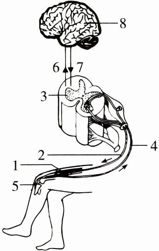 5. 下图为缩手反射的反射弧模式图,下列说法错误的是(