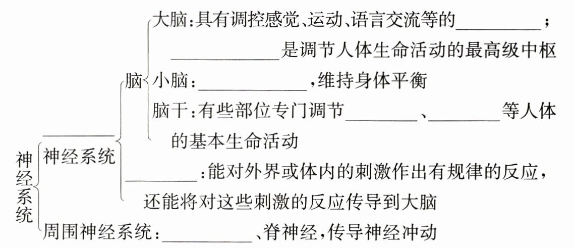 1.脊髓 神经;2.中枢 大脑皮层 协调运动 心跳 呼吸 脑神经