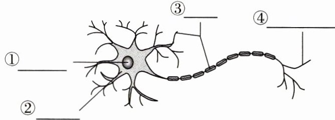 1.神经元 胞体 突起;2.①细胞核 ②胞体 ③突起 ④神经末梢;3.神经纤维 神经 神经末梢;4.突起末端
