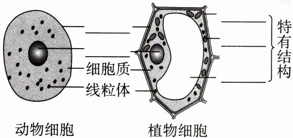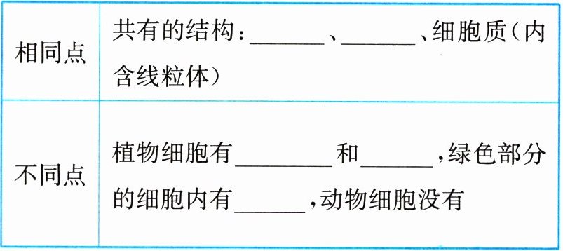 |不同点|植物细胞有____和____,绿色部分的细胞内有____,动物细胞没有|