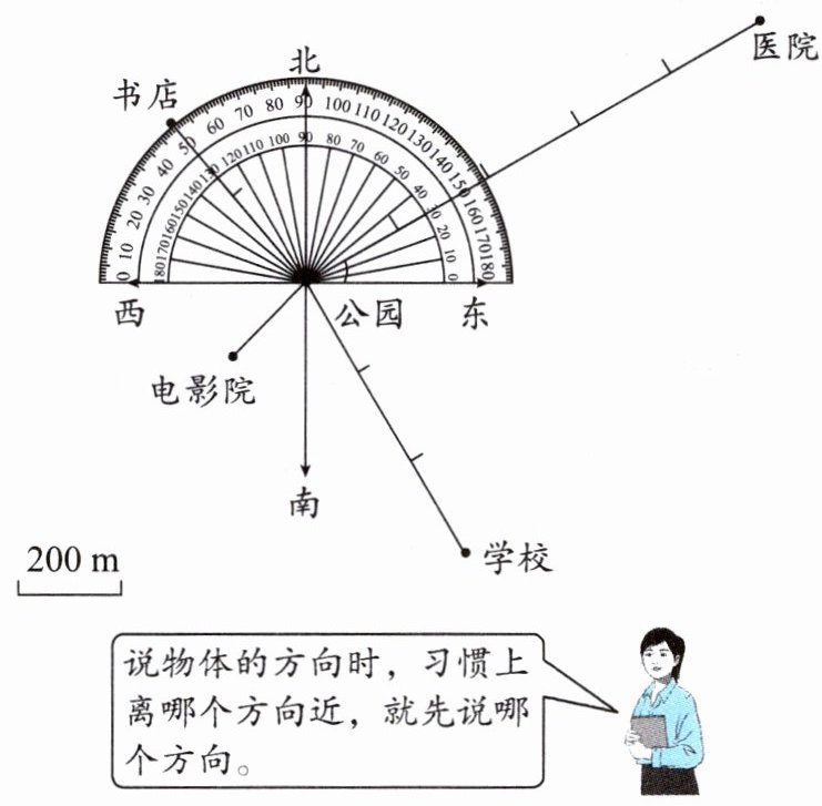 探究:根据下图如何描述公园与医院的位置关系?