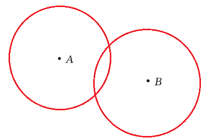 4. 分别以点A和点B为圆心画直径是3cm的圆。
