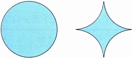 在左边的圆形图中,从圆心出发,沿两条互相垂直的直径剪两刀,将圆分成四个相等的扇形,然后按右图四角星的形状拼接即可拼成一个正方形。(在原图中,画出两条互相垂直的直径,将圆四等分,然后按图示方式拼接)