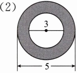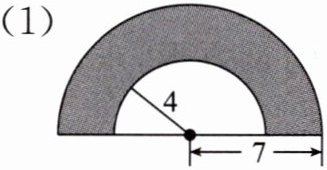 (1)3.14×(7²-4²)×$\frac{1}{2}$=51.81(cm²) (2)3.14×($\frac{5}{2}$)²-3.14×($\frac{3}{2}$)²=12.56(cm²)