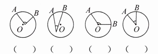 2. 下面图形中哪些角是圆心角?在( )里画“√”。