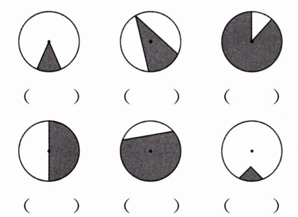 1. 下面哪些图形中的阴影部分是扇形?在( )里画“√”。