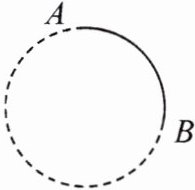 如图,圆上 $ A $、$ B $ 两点之间的部分叫作弧,读作“弧 $ AB $”。