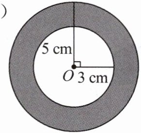 (2)5+3=8(cm) 3.14×(8²-5²)×$\frac{1}{2}$=61.23(cm²)