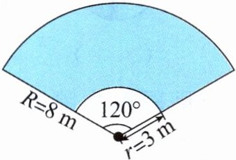 3.14×(8²-3²)÷360×120≈57.57(m²)
