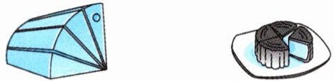 左图中,弧和经过这条弧两端的两条半径所围成的图形为扇形,所以左图基本图形中带弧线的部分为扇形(小扇形和大扇形),右图中糕点切块部分不是由圆的一条弧和经过这条弧两端的两条半径所围成的图形,所以不是扇形。