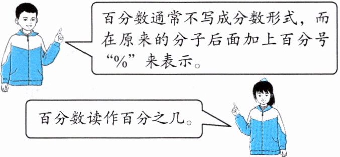 这三个数都带有“%”,像这样的数叫作百分数。百分数表示一个数是另一个数的百分之多少。