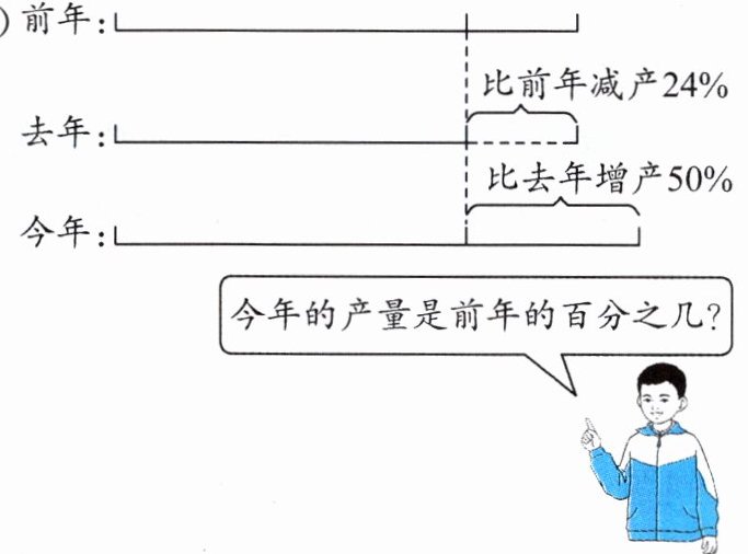 3. 想一想:如果将题目中的“今年大丰收,比去年增收 20%”改为“今年比去年减产 20%”,怎样解答呢?