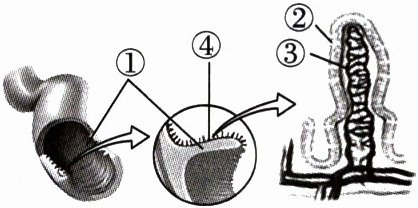 (2)如图所示,小肠内表面有许多环形的[①] ,其表面有许多突起,称为 ,使小肠具有巨大的表面积,小肠绒毛腔内含有丰富的[③] ,该管壁及绒毛壁都只由一层扁平的上皮细胞构成,有利于吸收营养物质。这体现了结构和功能相适应的生物学观点。