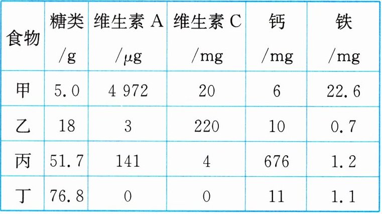 A.食物丁中维生素A和维生素C含量为0,应少食用或不食用