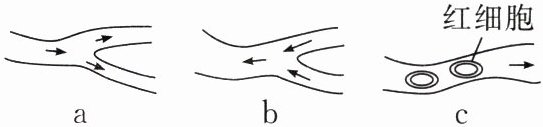 6. 图a、b、c分别代表人体三种类型的血管,箭头代表血管内血液流动方向。下列描述错误的是( )
