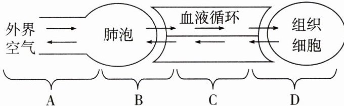 (2)过程D表示______与血液的气体交换,氧气最终进入组织细胞的______中被利用。