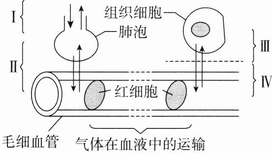 1. 人体组织细胞从空气中获得氧气、将产生的二氧化碳排放到空气中的过程如下图所示。其中完成哪一过程至少需要穿过两层细胞( )