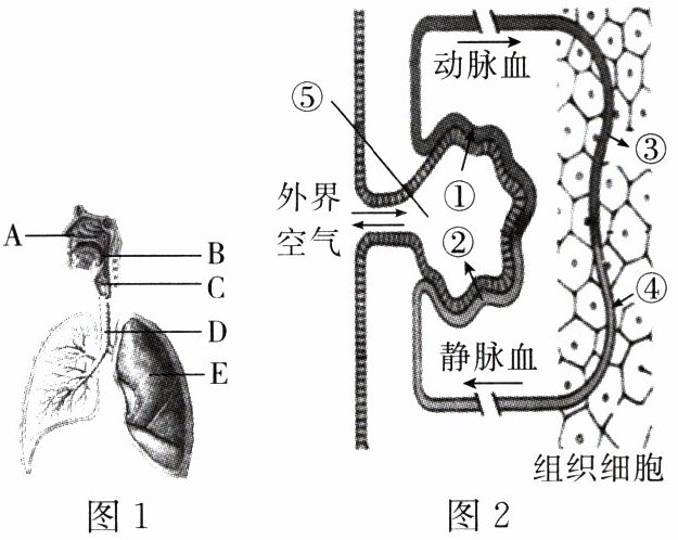 (2)图2中,外界与[⑤]____之间的气体交换是通过呼吸运动实现的。