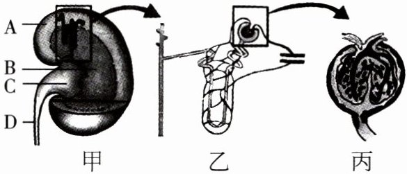 (3)根据图丙分析可知,肾小球是一个______球,由入球小动脉分支形成的毛细血管包绕而成,这些毛细血管的另一端汇集成______;肾小球被囊状结构包裹着,该囊状结构为______。