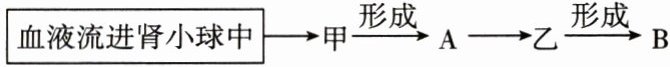 2. 下图表示尿液形成的过程,其中甲、乙表示结构,A、B表示液体。下列有关叙述错误的是( )