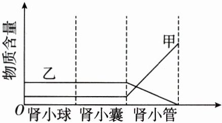6. (2024·眉山中考)下图中甲、乙两条曲线表示肾单位形成尿液的过程中,肾小球中的血浆、肾小囊中的原尿、肾小管中的尿液中两种物质含量的变化情况,曲线乙代表的物质是( )