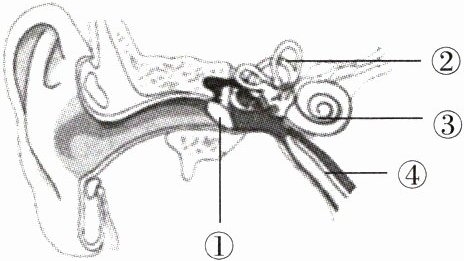 (2)外界的声波由外耳道传到鼓膜,引起鼓膜振动,振动经3块听小骨传到耳蜗,刺激耳蜗内的听觉感受器产生神经冲动;神经冲动沿着听神经传到大脑皮层的听觉中枢,形成听觉。