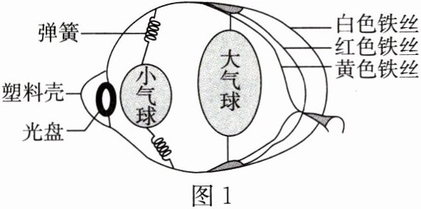 图1是同学们使用透明塑料壳、光盘、弹簧、白色铁丝、红色铁丝、黄色铁丝、大气球、小气球等常见材料制作的眼球结构模型。