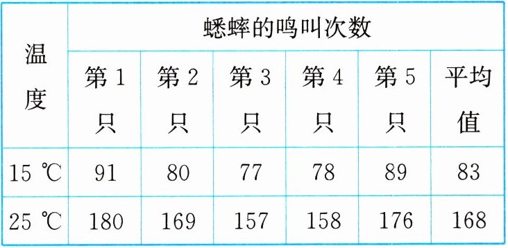 (3)分析数据,得出结论:温度会影响蟋蟀的鸣叫次数,蟋蟀在25℃时的鸣叫次数(填“多于”或“少于”)在15℃时的鸣叫次数。