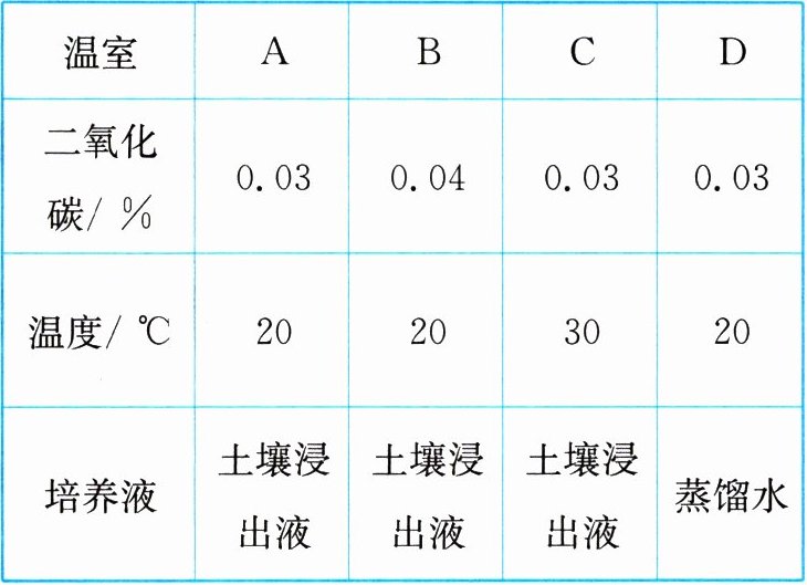 操作方案:a. 选择A、B、C、D4个大小相同的温室,设置部分环境条件如下表。