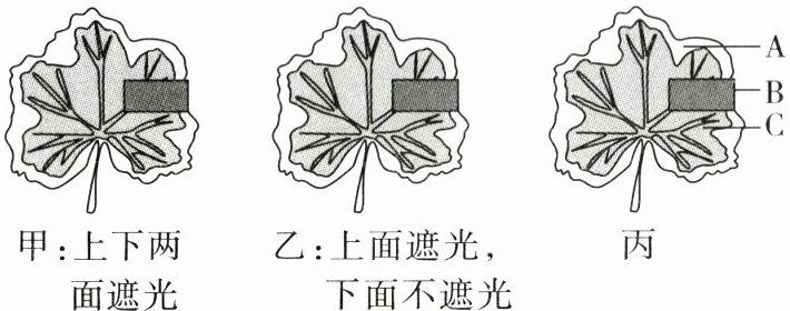 (3)丙同学采用正确的方法对银边天竺葵叶片进行遮光处理后,移至光下照射2~3h,摘下叶片,去掉黑纸片,用酒精进行脱色处理。
