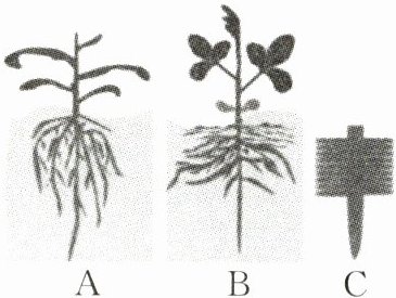 11. 植物在缺磷的土壤中, 常会在靠近土壤表层长出大量的平行根。不同的植物, 侧根形态结构略有差异, 例如, 有些植物长出短而密集的侧根, 甚至会紧密到形成毛刷状的结构 (如图 C)。下列分析错误的是 ( )