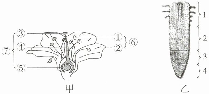 (1) 图甲中, 花的主要结构是 (填序号)。