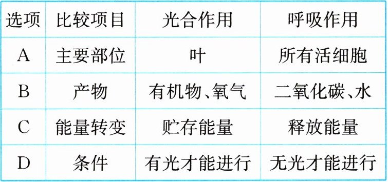 7. 下列有关植物光合作用和呼吸作用的比较,错误的是( )
