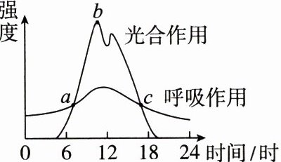 9. 右图中的两条曲线分别表示某植株一昼夜内光合作用和呼吸作用强度随时间的变化情况,下列分析错误的是( )