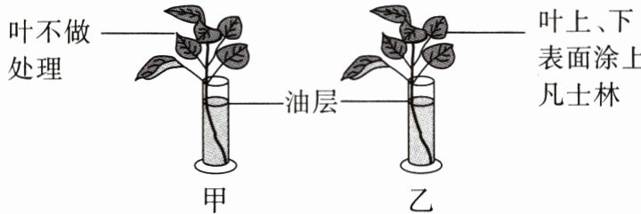 3. 取两根品种、大小、叶数相同的枝条,进行如图所示处理(注:凡士林可以堵塞气孔),并将两个装置放在光照环境中数小时。下列对实验的分析,错误的是( )
