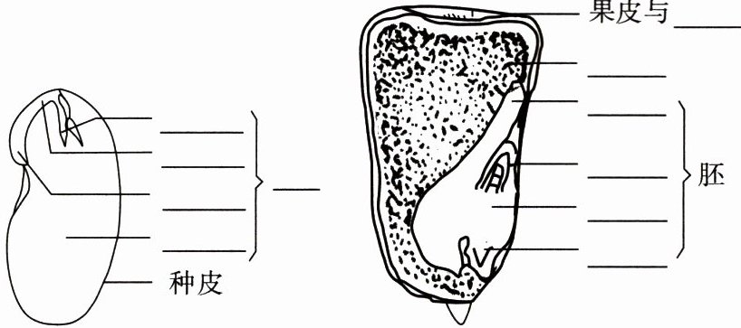 1.胚 营养储备 生活力 休眠 2.水 温度 空气 3.种皮 胚根 根 胚轴 茎 叶